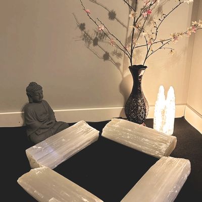 First you will step into a set of crystals that is laid out on the floor in the shape of a square. The crystals help ground and cleanse your energy while you receive an energy reading from Christina. Each reading is completely different and can include personal crystal and energy healing recommendations and messages coming through from Spirit and/or past loved ones. Most people feel a lot lighter after their crystal cleansing and the messages that come through can be simply amazing!